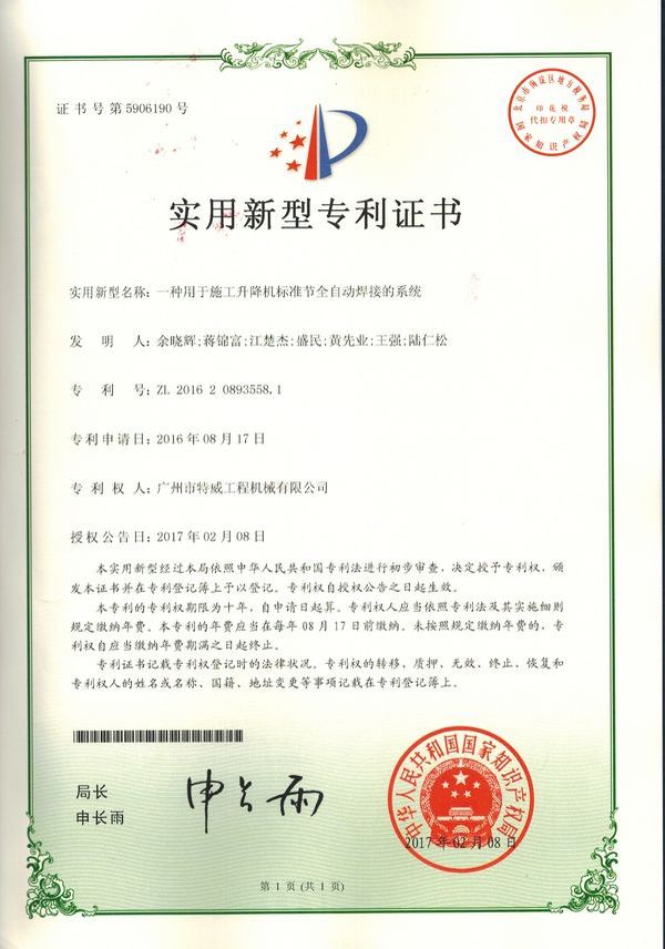 廣州市特威工程機械有限公司地處廣州市白云區神山鎮,廣清高速神山出口附近,是一家施工升降機的專業生產廠家。公司成立于2011年,占地100000多平方米,注冊資金1060萬元,現有員工300余人其中工程技術人員33人,高級技術人員52人。